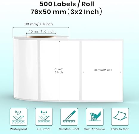 1️⃣ 【3×2 Thermal Labels – 500/Roll, Ready to Ship】 Perfect Fit:HUOJI 3×2-inch white labels – compatible with 99% of direct thermal printers.